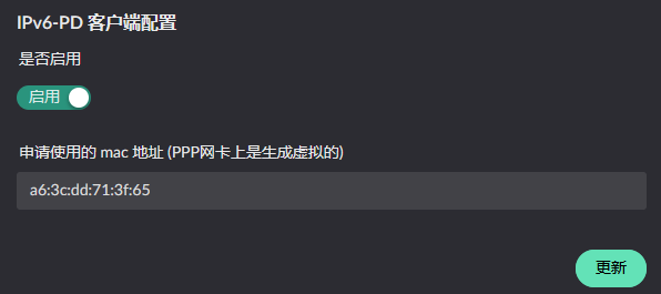 地址, 这样假设你有 WAN1, WAN2 两个网口分别获得了不同的 PD 前缀, 你可以同时使用这两个前缀映射到内部主机.