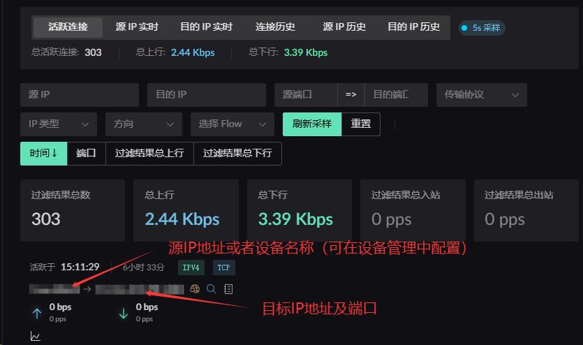 来自源IP地址或发往目的IP地址的流速统计、PPS统计