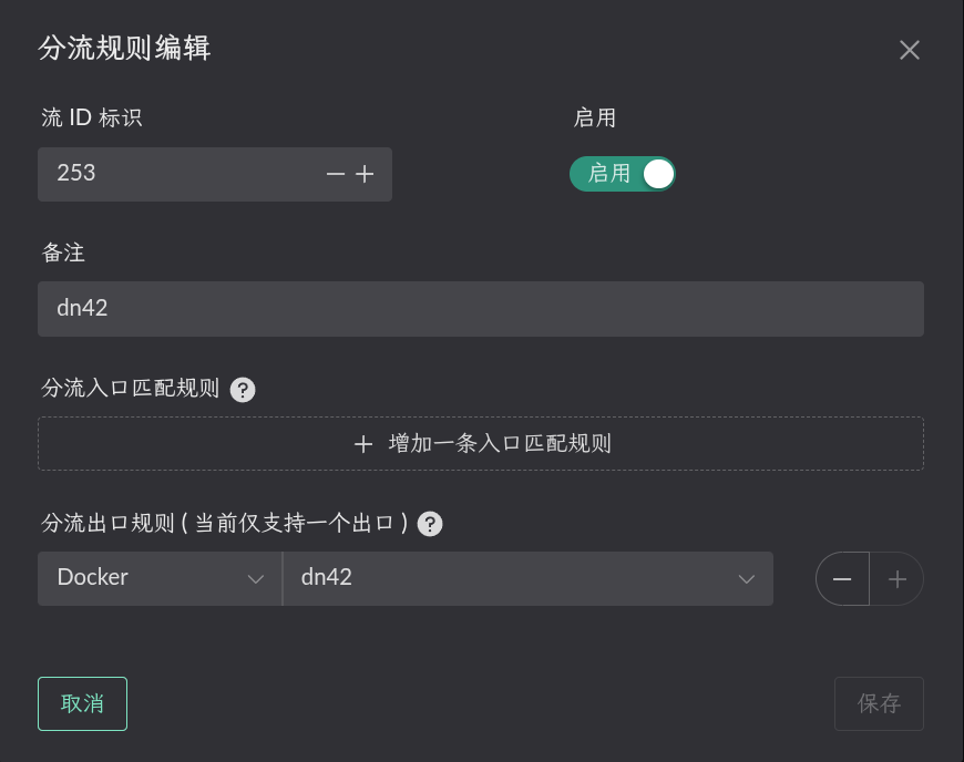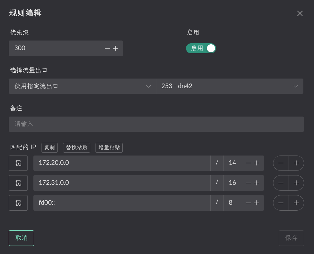 点击相应 Flow 的 目标 IP 按钮进行配置. 只有添加相应规则的 Flow 才会生效.