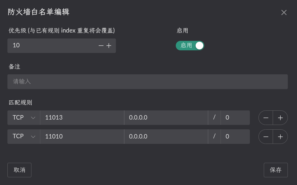 点击相应 Flow 的 目标 IP 按钮进行配置. 只有添加相应规则的 Flow 才会生效.