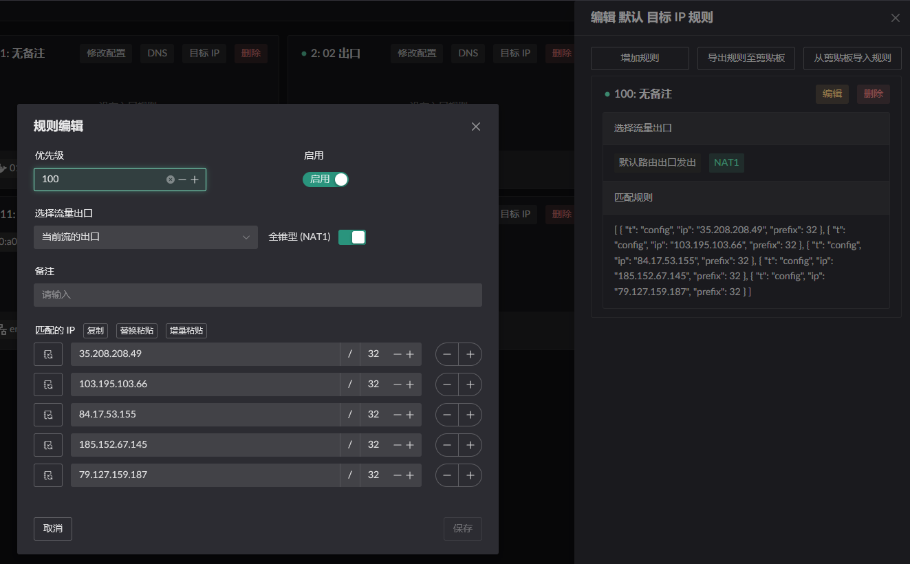 PLANET添加到 IP 规则中. 并开启 NAT1 开关.
